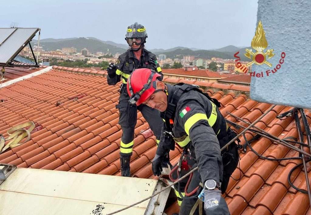 Gli operatori con tecniche e attrezzature Saf (Speleo alpino fluviali), hanno raggiunto il tetto della struttura e rimosso gli elementi divelti dal parapetto dell’abitazione che rischiavano di cadere e coinvolgere persone o veicoli. Molte chiamate anche a Cagliari: una squadra è stata inviata in via Dante per un albero pericolante.