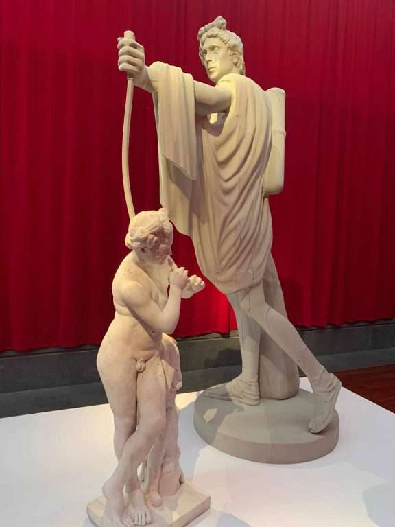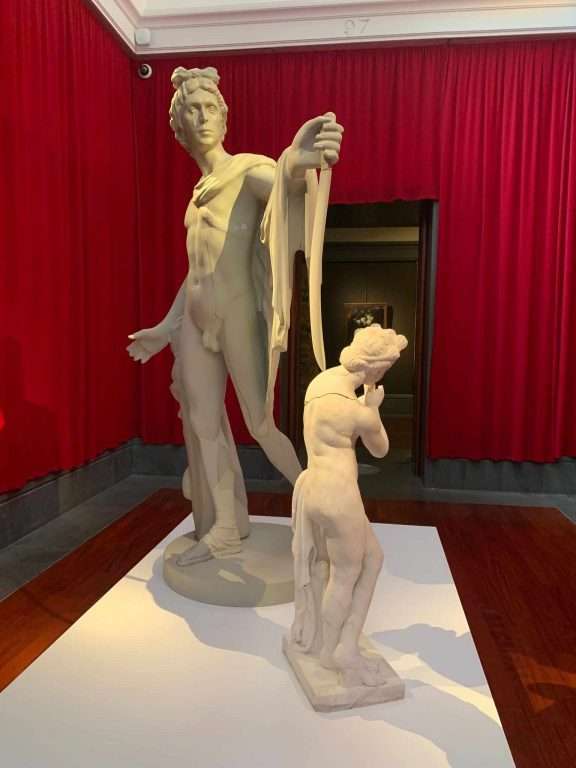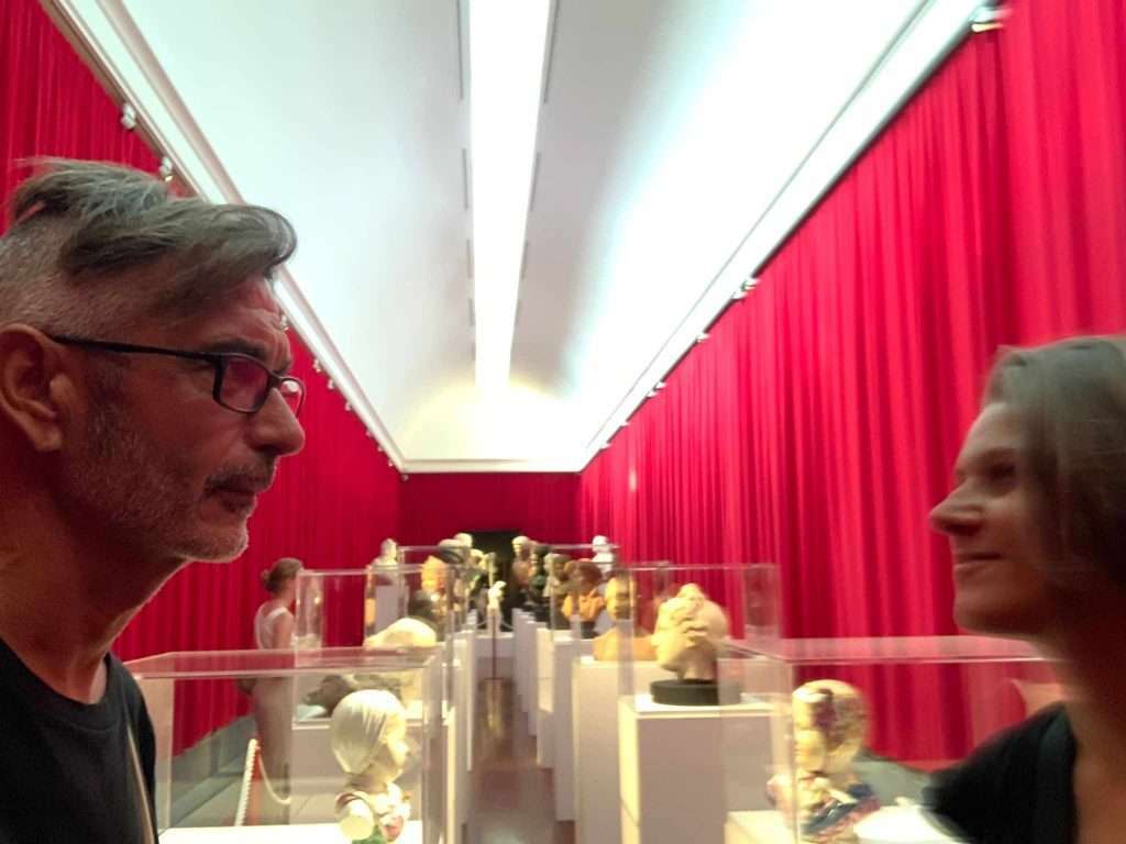 Impatto in visita a Capodimonte, in una installazione di Francesco Vezzoli, artista considerato “internazionale” (con il termine internazionale, in un globo interconnesso in ogni suo frattale, che pare svuotato di senso, dal momento che non c’è angolo di pianeta che non sia frammento di Babilonia): l’installazione consiste nel trattare depositi e opere del Museo, come fossero ready made, che direziona come stessero dialogando tra loro con lo sguardo, dialogo che l’artista orchestra oltre lo spazio, il tempo e lo stile, alla fine di questo corridoio di sguardi, un autoritratto dell’artista come Apollo che uccide il satiro nel nome della bellezza, e che rivolge lo sguardo allo spettatore.