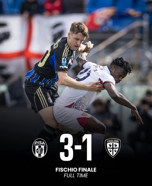 Parte meglio il Pisa che al 9’ sblocca con Moreo su rigore. Al 12’ Obert prende il palo di testa su cross di Palestra e sul tap-in Sulemana manda fuori di testa. Il Cagliari reagisce bene ma non sfonda. Gara ruvida e spezzettata, al 38’ episodio chiave con Durosinmi espulso per fallo a palla lontana su Mina: l’arbitro vede tutto subito e non ha dubbi. Si prosegue con il Cagliari a caccia della scossa. Finale di primo tempo intenso con Nicolas che salva su Obert che calcia col sinistro rasoterra sul palo lontano, poi Caprile è decisivo su Hojholt sotto porta allo scadere. Dopo 6’ di recupero si va al riposo.