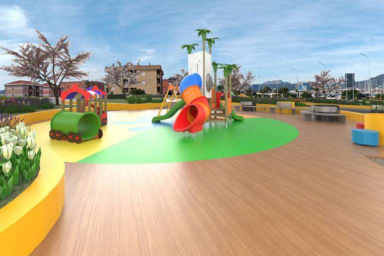 In dettaglio, la nuova area sarà pavimentata in calcestruzzo architettonico e legno, dotata di panchine con presa di ricarica per smartphone alimentata da appositi pannelli solari e area giochi per bambini.