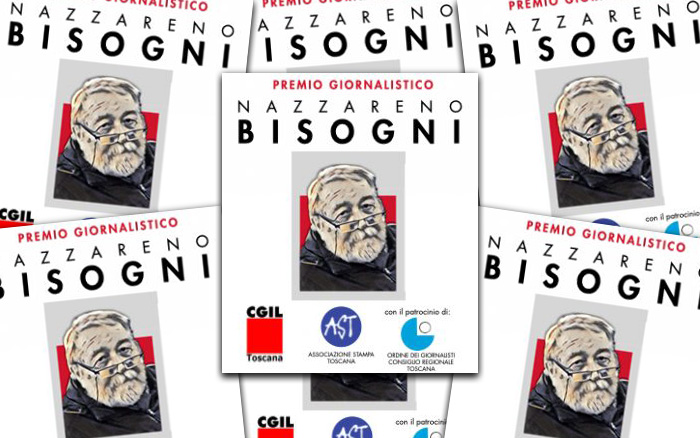 La Cgil Toscana, con la collaborazione dell’Associazione Stampa Toscana e dell’Ordine dei Giornalisti della Toscana, organizza la terza edizione del “Premio giornalistico Nazzareno Bisogni” con lo scopo di incoraggiare la formazione e riconoscere l’attività di giovani giornalisti di carta stampata, online, radio e televisione in Toscana, in ricordo di Nazzareno Bisogni, capo ufficio stampa della Cgil Toscana per oltre 20 anni e dirigente di lungo corso del sindacato dei giornalisti (è stato vicepresidente dell’Ast e ha fatto parte della giunta esecutiva della Fnsi).