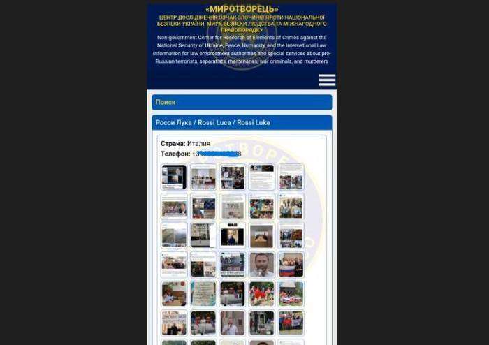 ‘Sulle pagine del cosiddetto ‘pacificatore’ compaiono numerose segnalazioni di oppositori politici, militari e semplici cittadini ucraini, russi o stranieri, colpevoli di non accettare il nuovo corso politico inaugurato con l”Euromaidan’ – continua l’associazione -. Ogni segnalato corrisponde ad un obiettivo da liquidare fisicamente, così come é accaduto a Oles Buzina (giornalista), Darya Dugina (deceduta in un attentato a Mosca) o Maksim Fomin (Vladlen Tatarsky) ucciso a San Pietroburgo.