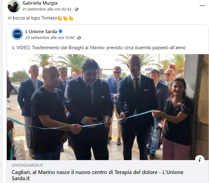 E proprio Tomaso Gerolamo Cocco nella settimana scorsa aveva inaugurato, nel corso di una cerimonia alla presenza di diverse personalità, tra cui il governatore Christian Solinas, i nuovi locali della Terapia del dolore all’ospedale Marino di Cagliari.