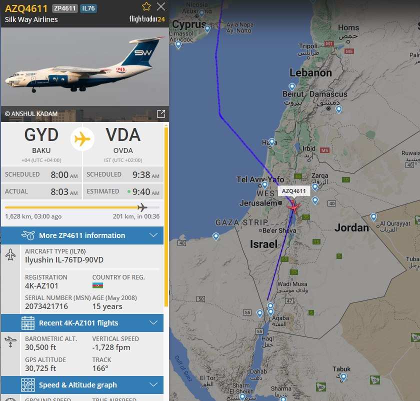 Terzo volo cargo azero nella base israeliana di Ovda per il 2024. Avi Scharf (Haaretz) afferma che l’anno scorso sono stati effettuati 19 voli di questo tipo, con un picco prima dei recenti combattimenti in Nagorno-Karabakh