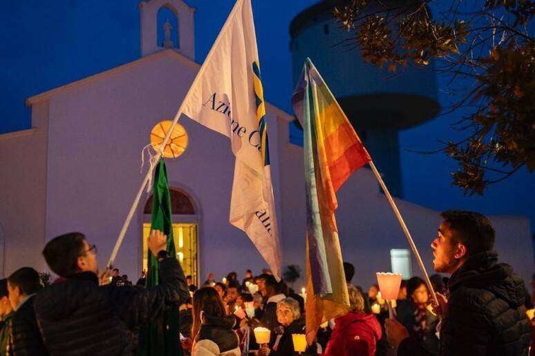 È stata una fiaccolata silenziosa partita da piazza San Ciriaco per arrivare alla Chiesa di San Pietro. Lì si è svolta la Veglia di preghiera presieduta dal vescovo Roberto Carboni.