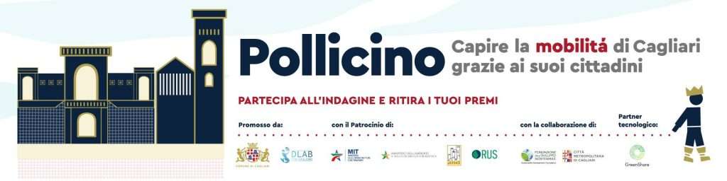 Il Progetto Pollicino è promosso dal Comune di Cagliari nell’ambito delle attività del Cagliari Digital Lab con il patrocinio del Ministero delle Infrastrutture e dei Trasporti, del Ministero dell’Ambiente e della Sicurezza Energetica, dell’Associazione Nazionale Comuni Italiani e della Rete Università Sostenibili, in collaborazione con la Città Metropolitana di Cagliari, la Fondazione per lo Sviluppo Sostenibile e il supporto tecnologico di GreenShare partner del Cagliari Digital Lab.