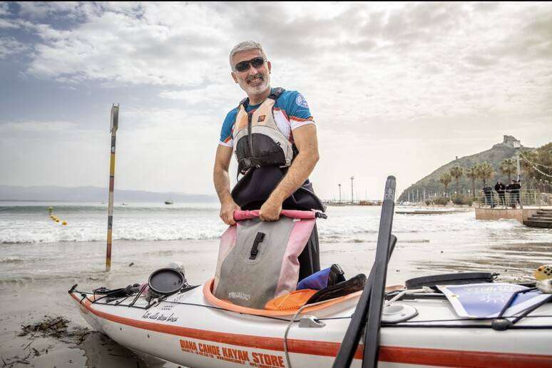 Il 47enne cagliaritano è partito questa mattina da Marina Piccola per tentare di nuovo, dopo il giro del 2019, la circumnavigazione della Sardegna a bordo del suo kayak Diana.