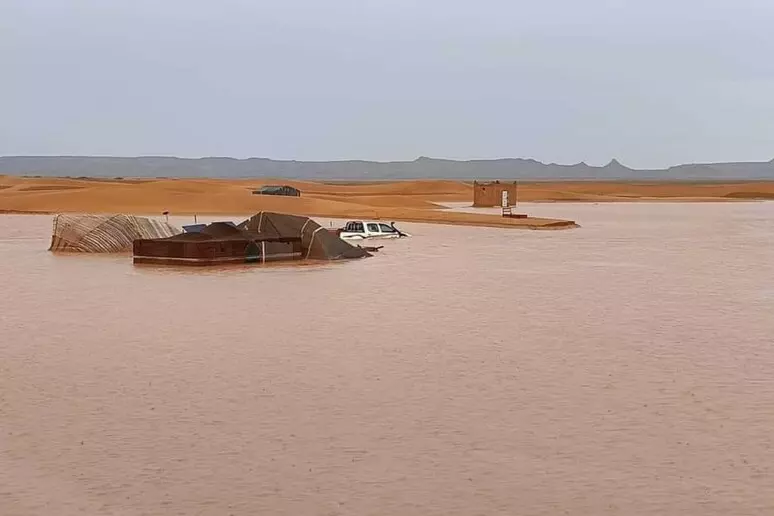 Numerosi i turisti, che sorpresi dalle intemperie nei bivacchi attorno all’Erg Chebbi, la duna più alta del Sahara, vicino a Merzouga, sono rimasti bloccati.