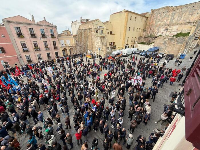 Circa centoventi fasce tricolore, bandiere dei tre sindacati, parlamentari del campo largo (tra loro Silvio Lai e Marco Meloni del Pd, Francesca Ghirra di Avs, Sabrina Licheri di M5s), consiglieri regionali e assessori: in circa millecinquecento si sono ritrovati questa mattina nel cuore di Cagliari, in piazza Palazzo, sede della Prefettura e palazzo regio, simbolo della dominazione sabauda nell’isola, per la manifestazione indetta dalla presidente della Regione Sardegna Alessandra Todde contro il piano del governo per trasferire oltre un terzo dei detenuti in regime di 41 bis nell’isola in tre carceri dedicate.