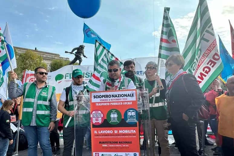 Sul palco della manifestazione nazionale a Roma è intervenuta sul palco la delegazione sarda della Fit Cisl, guidata da Giuseppe Pinna.