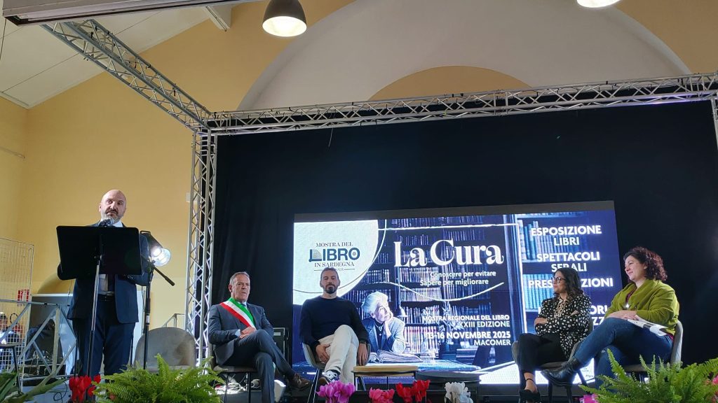 L’assessora alla Cultura di Macomer, Fabiana Cugusi, si è invece soffermata sulle realtà locali che si occupano di cultura a Macomer: “Abbiamo il Centro Servizi Culturali a cui è affidata l’organizzazione della Mostra che fa cultura tutti i giorni, abbiamo la biblioteca comunale, che partecipa attivamente a questa manifestazione. Con un lavoro sinergico riusciamo a portare la cultura a Macomer, nel Marghine e siamo arrivati anche oltre perché abbiamo scuole che arrivano da altri territori dell’Isola”. Non sono mancati i ringraziamenti agli uffici comunali, a tutti coloro che hanno lavorato per la riuscita dell’evento, al Centro Servizi Culturali e in particolare a Roberta Balestrucci, coordinatrice della Mostra, che ha preso la parola subito dopo ricordando perché si è scelto il tema della cura e di come questo venga declinato nei numerosi laboratori organizzati per le scuole, con oltre duemila partecipanti, e nel programma della Mostra: “I libri sono il veicolo attraverso cui ognuno di noi riesce a trovare una cura per sé stesso, ma il lavoro che facciamo è sempre volto anche a prenderci cura gli uni degli altri”, ha dichiarato prima di ricordare gli eventi di questi giorni, che vedono protagonisti tanti autori e autrici sardi e non, e di ringraziare tutti, dai collaboratori agli studenti, dai dirigenti scolastici ai giovani che si occupano dell’accoglienza, dagli ospiti alle case editrici presenti: Nor, Condaghes, Catartica, Angelica, Ischìre, Barbaro, Logus Mondi Interattivi.
