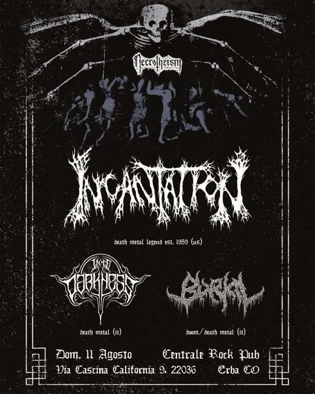 Necrotheism Prod. annuncia il ritorno in Italia, in veste di headliner, degli Incantation, leggenda del death metal americano al 35esimo anniversario della propria attività, per una data al Centrale Rock di Erba, Domenica 11 Agosto.