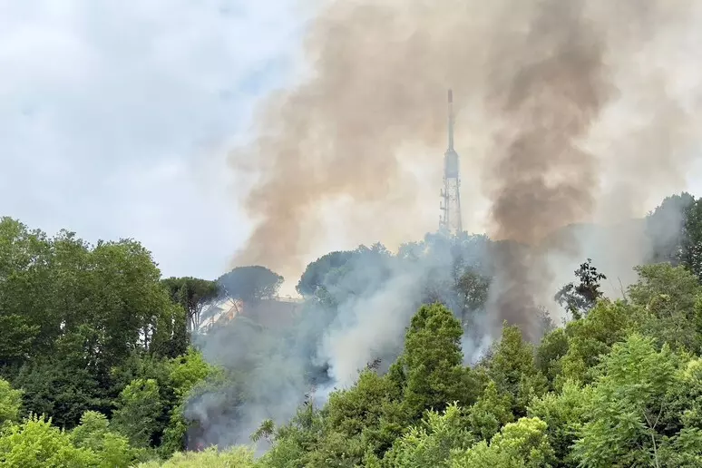 Fiamme su collina Monte Mario a Roma, chiuse alcune strade