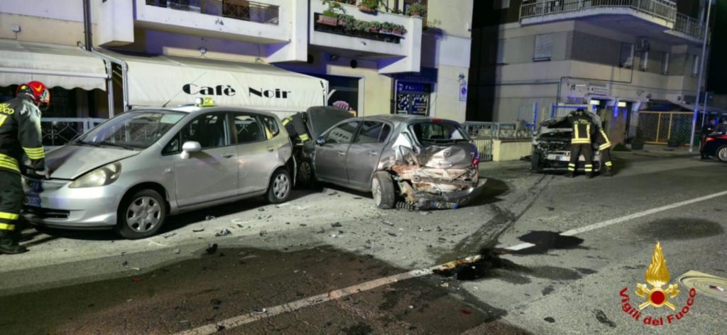 Un incidente stradale è avvenuto nella notte  in via P. Catte a Nuoro, dove per cause da accertare un auto, si è scontrata con altre  tre auto.