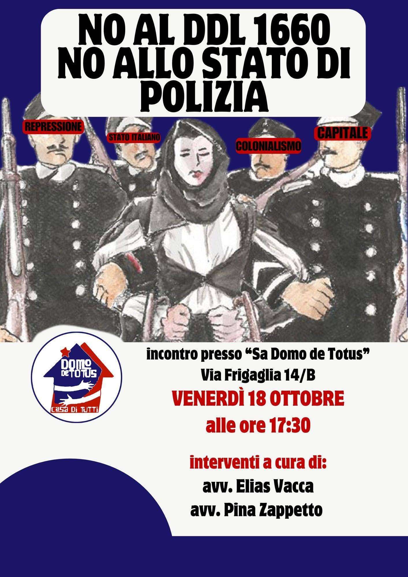 Gli esperti legali chiamati da Sa Domo, esporranno questo e altri punti salienti del DDL e poi risponderanno alle domande della cittadinanza. L’evento si terrà presso Sa Domo, in via Frigaglia 14/B, venerdì 18 ottobre alle ore 17:30. L’incontro – conclude Cossu – «sarà un’occasione cruciale per riflettere insieme, confrontarsi e organizzare una risposta collettiva.