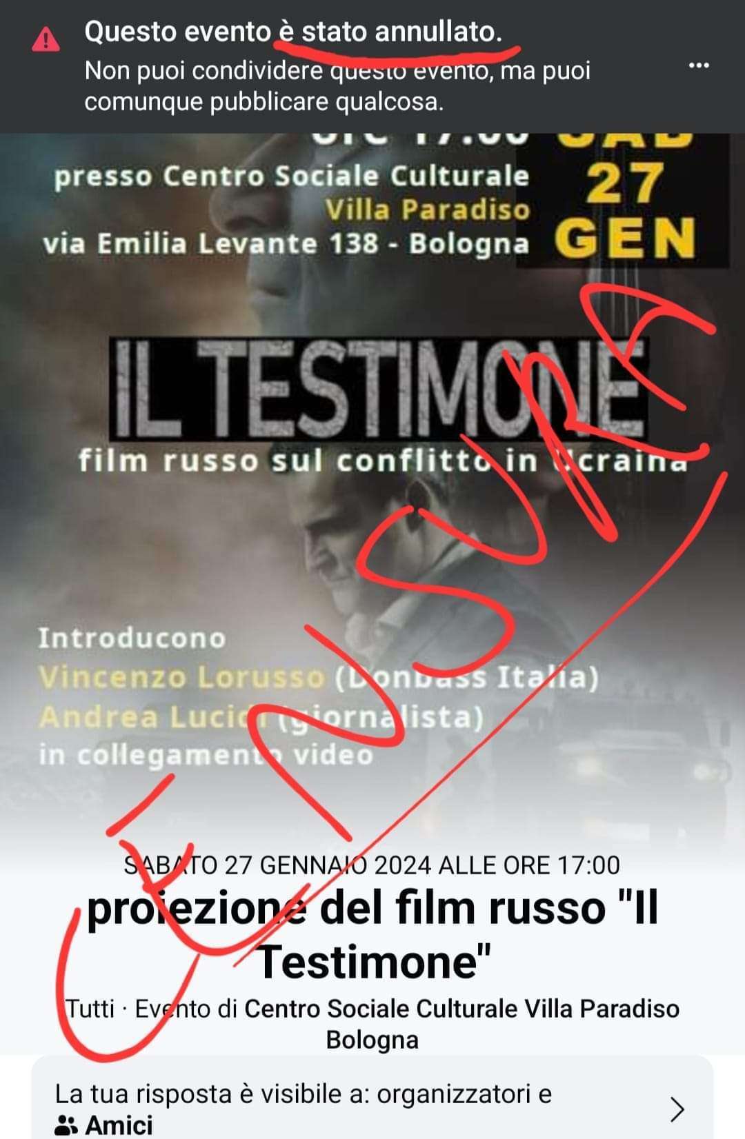 “Mentre la campagna elettorale si trascina stancamente, tra stucchevoli battibecchi neanche troppo convinti tra i due principali candidati, è di questi giorni la notizia del tentativo di censura del film Maidan da parte del vice Presidente del Parlamento Europeo, eletta nelle fila del Pd, Pina Picierno, per fortuna poi proiettato ugualmente in una sala parrocchiale di Ravenna. Un brutto episodio che richiama alla mente la vera e propria persecuzione subita in tutta Italia, dal film russo “Il Testimone”, contro il quale si è abbattuta la scure di una censura pesantissima in varie città, cominciando da Bologna per arrivare a Sassuolo, dove la Proloco (con Presidente in quota FDI) ha negato l’uso di una sala civica senza nessuna motivazione valida, se non compiacere il regime di Kiev.