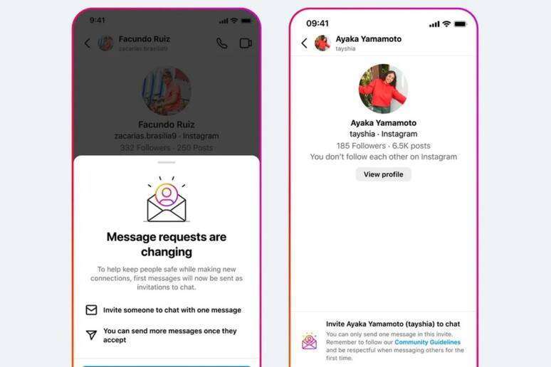 La volontà di Meta è permettere agli iscritti di inviare Direct per invitare gli altri a connettersi, eliminando la possibilità di ripetere più volte la richiesta. La funzionalità era già in fase di test con un numero ristretto di utilizzatori da giugno e ora è disponibile per tutti. Il messaggio di invito, da condividere con chi non è ancora nella lista dei contatti, non può includere fotografie, video o audio.