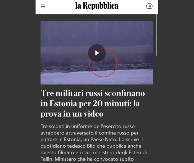 Le immagini nitidissime e paurose dimostrano come Putin non veda l’ora di attaccare l’Europa, in questo video nitidissimo, uno dei tre soldati russi è sicuramente senza calzini e ha in mano i microchip di una lavastoviglie saccheggiata a qualche povera donna estone, mentre un secondo soldato ha in mano una pala.