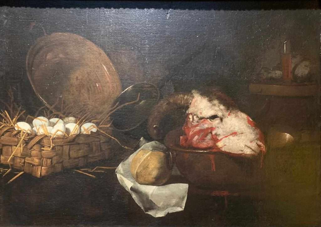 Oltre Caravaggio, sta per non solo Caravaggio e ciò che si è determinato a partire da lui, verso un territorio di contrapposizione tra idealismo e naturalismo nell’arte, io per questioni di tensione sensoriale e intellettiva propendo per la scientificità dell’osservazione naturale, rispetto alla mistificazione (che talvolta rasenta la propaganda) dell’idealizzazione di ciò che si mostra. Quello che viene sublimato, è l’esercizio di maniera, la specializzazione di genere, insomma chi l’ha detto che “lavorare alla maniera di…” o “citare il linguaggio di…” non sia artistico? Sapete quanti artisti, proprio nel nome di questo, decidono, uno volta ottenuta la licenza d’Alta Formazione Artistica, di continuare il proprio percorso nel settore del Restauro conservativo, proprio per preservare e legittimare il linguaggio dell’altro? Si può così apprezzare la forza e la delicatezza compositiva teatrale di Mattia Preti (che chiude il seicento a Malta, proprio come il Caravaggio), che ci mostra Cristo rispondere agli Ebrei, che gli chiedono se fosse giusto pagare un tributo a Cesare “date a Cesare quel che è di Cesare e a Dio ciò che è di Dio” o scacciare Satana facendolo precipitare da un monte. L’eclettismo di Ribera, arriva a confrontarsi nel genere della natura morta, con Ruoppolo e Recco (giganti in materia), con la sua “Natura morta con testa di caprone”.