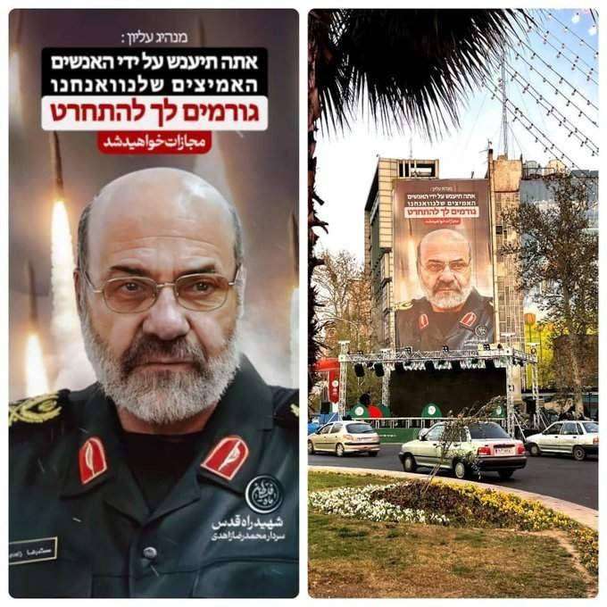 Nuovo cartello in ebraico in piazza Palestina a Teheran. Infatti proprio oggi in Iran si ricordano i martiri uccisi dai sionisti.