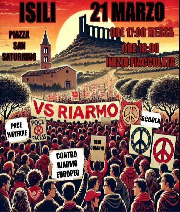 La parrocchia di Isili e il Comitato Sarcidano Difesa Territoriale intendono offrire un segnale di ferma opposizione al progetto di riarmo europeo e mondiale, per questo hanno promosso una fiaccolata a Isili.