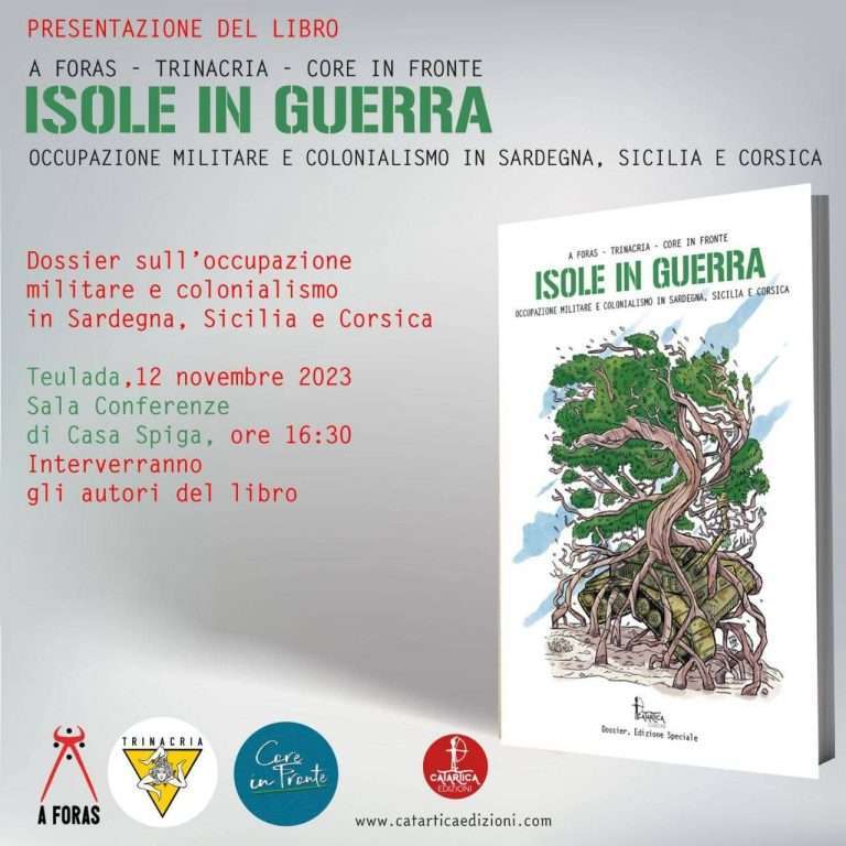 Occupazione militare e colonialismo in Sardegna, Sicilia e Corsica” edito da Catartica Edizioni e gli autori del libro sono A Foras (Assemblea di lotta contro l’occupazione militare della Sardegna); Trinacria (Movimento indipendentista siciliano); Core in Fronte (Movimento indipendentista corso).
