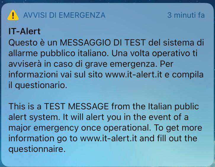 L’obiettivo è che It-alert possa avvisare la cittadinanza in futuro in caso di gravi emergenze o catastrofi ambientali. La prima giornata di test si è svolta in Toscana, dove è stato inviato un messaggio di “prova” su tutti i cellulari.