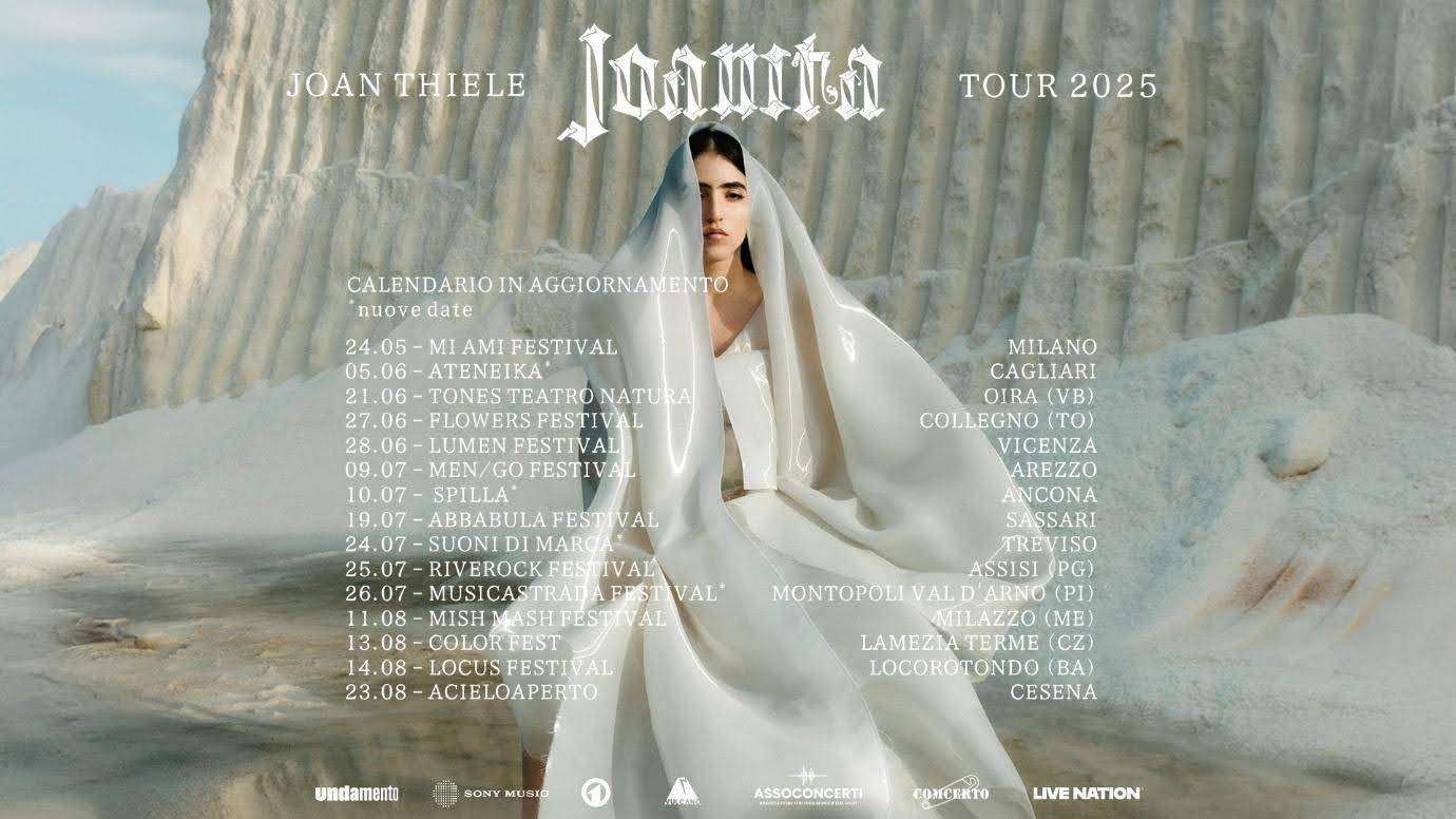 Sono quattro i nuovi appuntamenti annunciati: Joan si esibirà il 5 giugno ad Ateneika a Cagliari, il 10 luglio a Spilla ad Ancona, il 24 luglio a Suoni di Marca a Treviso e il 26 luglio a Musicastrada Festival a Montopoli Val D’arno (PI).
