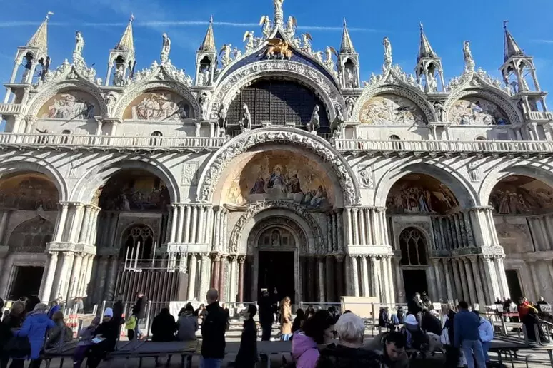 Torna a splendere la facciata della Basilica di San Marco, a Venezia, finalmente libera dalle impalcature dopo oltre 7 anni di lavori e sono stati completati anche gli interventi del Nartece Nord.
