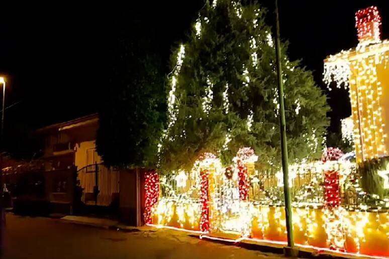 Quasi 500 metri quadri tra giardino e villetta completamente illuminati a giorno da 50 mila led, una cassetta per le lettere nella quale i bambini possono inserire le loro richieste e un grande presepe sulla soglia.