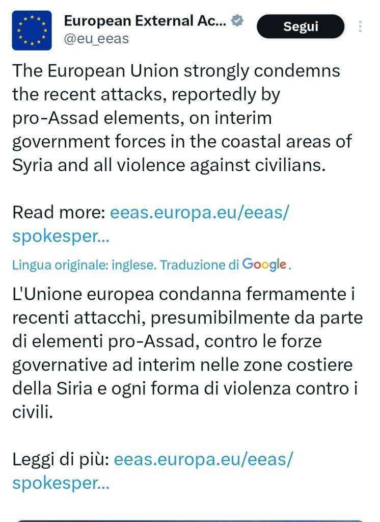 La feccia Ue si dimostra sempre di più uno sterco in mano a poteri occulti che impongono un unico modello geopolitico asservito ai paesi del Golfo e al regime sanguinario israeliano, insomma un immonda schifezza dalla quale dobbiamo uscire il prima possibile.