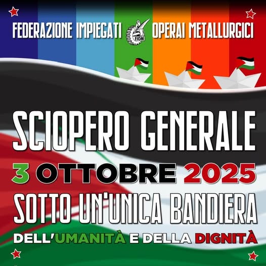 “La Fiom partecipa allo sciopero generale indetto dalla Cgil per venerdì 3 ottobre e sarà in piazza in tutte le città per sostenere la Global Sumud Flottilla e per fermare il genocidio del popolo palestinese.