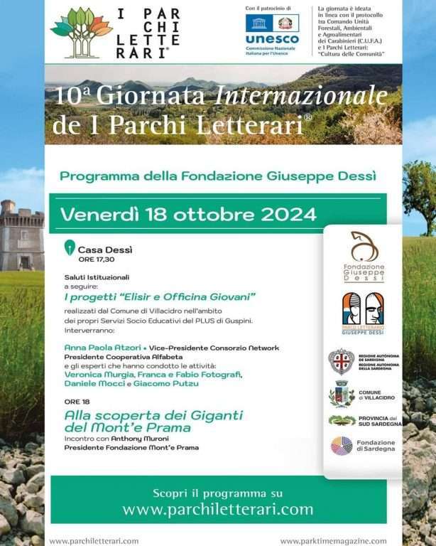 La presidente della Fondazione Dessì, Debora Aru, ribadisce che «la giornata dei Parchi letterari è un’opportunità per scoprire e celebrare la storia e la letteratura legate al nostro territorio, riscoprendo autori e opere che ci rappresentano. È anche un’occasione per condividere esperienze con persone che amano la letteratura e la natura, creando legami e scambi di idee. In questo contesto, quest’anno la Fondazione Giuseppe Dessì avrà l’onore di ospitare il Presidente della Fondazione Mont’e Prama, anch’essa impegnata nella valorizzazione del patrimonio culturale sardo. La sinergia tra queste due fondazioni rappresenta un’importante opportunità per unire le forze e promuovere una maggiore consapevolezza del patrimonio della nostra Regione».