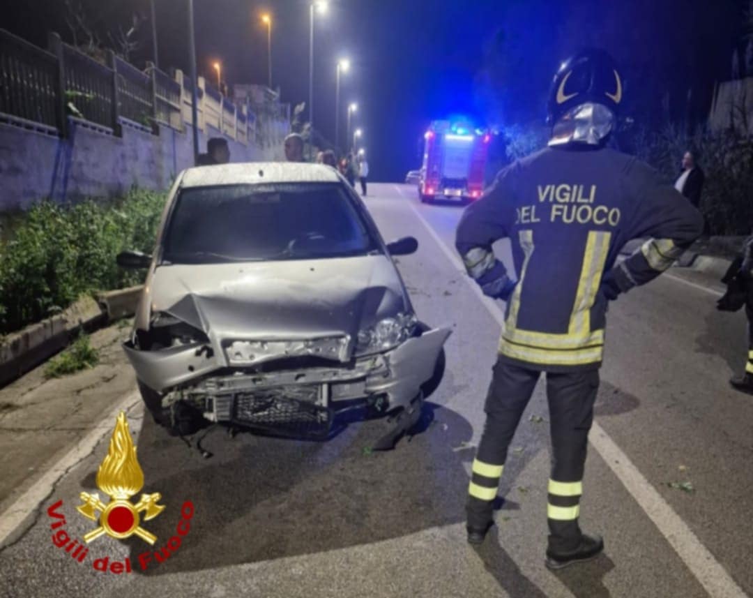 L’auto coinvolta ha perso il controllo andando a sbattere sul ciglio della carreggiata delimitata da una bordura in cemento.