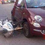 Gli operatori del 115 provvedono alla messa in sicurezza dei mezzi e a liberare la moto rimasta incastrata sotto l’auto.