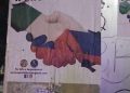 Sono centinaia i manifesti contro la guerra affissi a Cagliari con l’immagine di due mani che si stringono, dipinte con i colori delle bandiere di Italia e Russia.