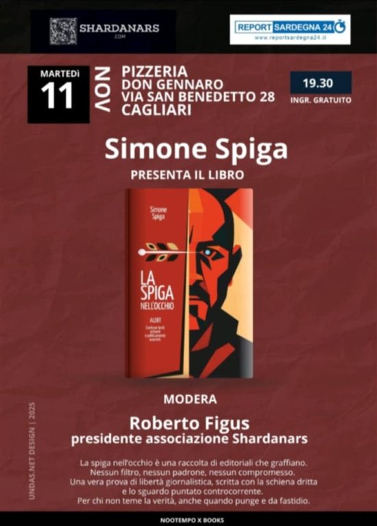 Martedì 11 novembre il giornalista sardo Simone Spiga presenterà il suo libro “La Spiga nell’occhio” ( edito da nootempo x books ) a Cagliari, presso la pizzeria Don Gennaro in via San Benedetto 28.