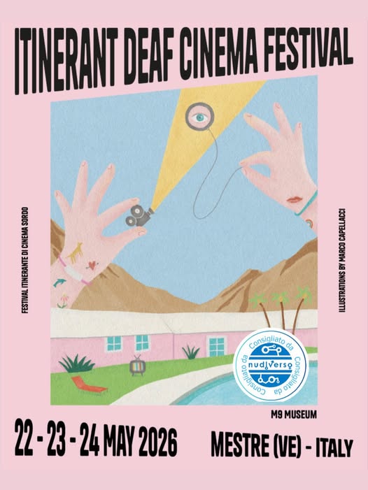 Proiezioni, cortometraggi in concorso internazionale, anteprime, seminari e dialoghi con registi e professionisti del settore per esplorare e valorizzare il cinema sordo in tutte le sue forme.
