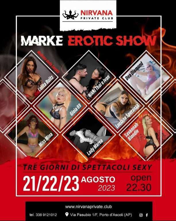 ( lunedì 14. Martedì 15 e mercoledì 16 agosto p.v. ) nonché il “ Marke Erotic Show” ( lunedì 21, martedì 22 e mercoledì 23 agosto p.v. ) .