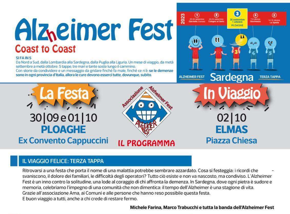 L’Alzheimer Fest sbarca in Sardegna dal 30 settembre al 2 ottobre con un mini tour di due giornate che avrà