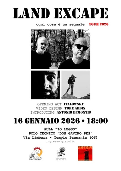 Il concerto dei LanD ExcapE in Sardegna è previsto il 16 gennaio alle 18 presso il Polo Tecnico “Don Gavino Pes”, via Limbara, Tempio Pausania (OT) – Ingresso gratuito.