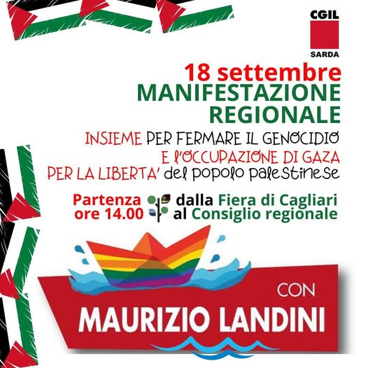 Il segretario generale della Cgil Maurizio Landini sarà domani, giovedì 18 settembre a Cagliari per partecipare all’assemblea della Cgil regionale e alla manifestazione con un corteo per Gaza.