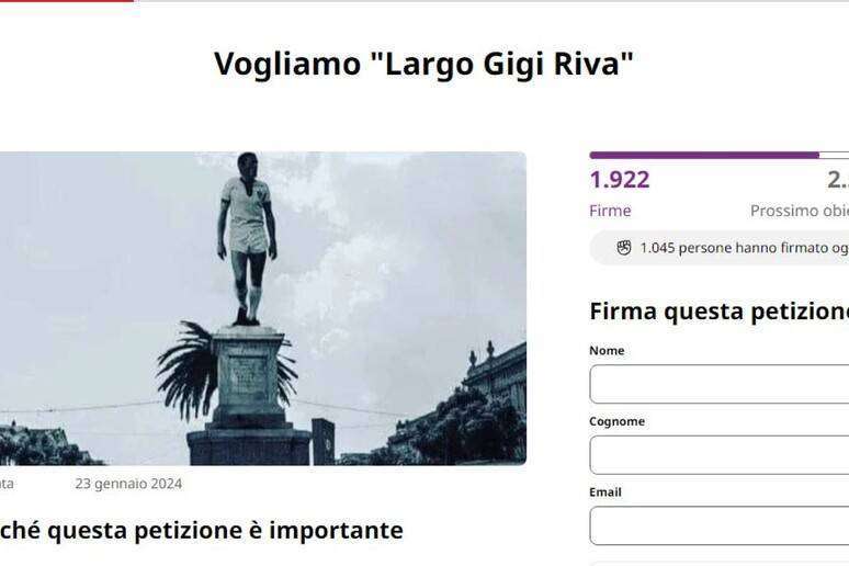 Nelle occasioni che riguardano il club sardo la statua di Carlo Felice, che indica col il braccio e il dito l’inizio dell’omonima strada statale che collega Cagliari e Sassari, viene “vestita” di rossoblù. Ora, nel giorno dei funerali del bomber del Cagliari e della Nazionale, c’è chi ha pensato di lanciare una petizione on line per titolare una delle principali strade cagliaritane a Gigi Riva.