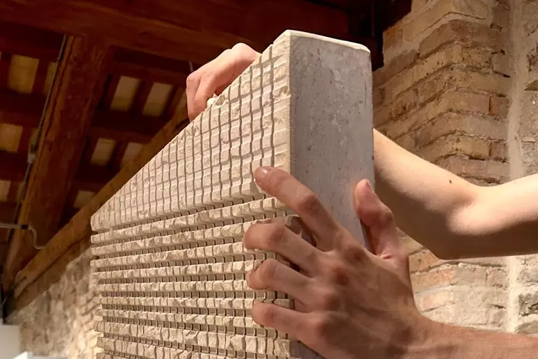 “Come Fondazione Sciola e come figli di Pinuccio Sciola, artista famoso a livello internazionale, siamo veramente onorati di poter essere qui” afferma Maria Sciola, direttrice della fondazione Pinuccio Sciola. Una presenza che serve “a raccontare il suo operato ma anche la sua filosofia di vita”. Un pensiero che si ritrova nelle pietre esposte al Padiglione, come quella in calcare che, dice Maria Sciola, “emette una sonorità liquida”.