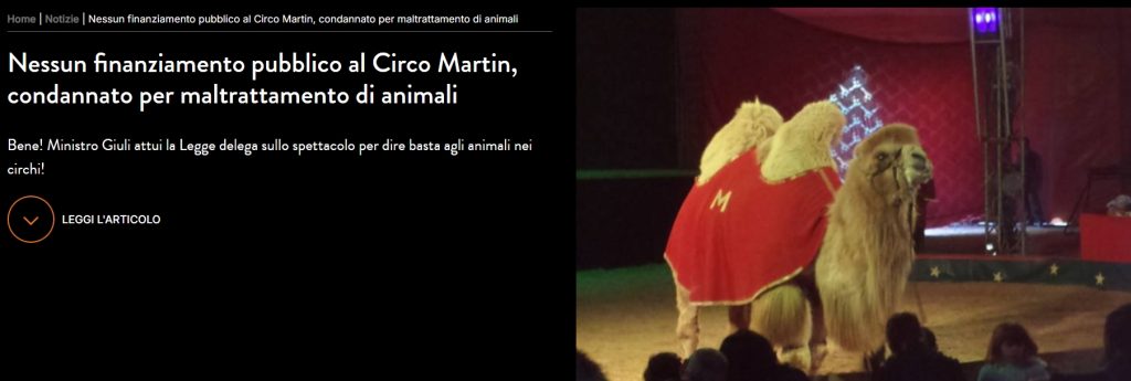 “Questo è un risultato enorme che nasce dalla decisione di LAV di non rimanere indifferente di fronte alle sofferenze degli animali. Grazie alla denuncia fatta da LAV nel 2014 che ha portato a 10 anni di processo, al sequestro di 20 animali tutti affidati a LAV e alla sentenza della Corte di Cassazione che nell’ottobre scorso ha confermato la colpevolezza di due circensi proprietari del Circo Martin accusati di maltrattamento degli animali, oggi un nuovo tassello di questa storia è stato scritto: nessun finanziamento pubblico va e andrà a chi è stato condannato per maltrattamento sugli animali”, afferma