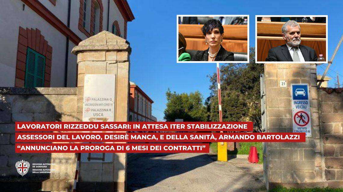 I contratti dei lavoratori della struttura sanitaria di Rizzeddu a Sassari, in scadenza il prossimo 30 giugno, verranno prorogati fino al 31 dicembre 2024. “Nelle more di un iter più articolato finalizzato alla stabilizzazione, abbiamo fatto prorogare per sei mesi tutti i contratti. Un periodo utile a individuare e vagliare tutte le soluzioni più confacenti per dare finalmente un esito positivo a questa annosa vertenza”, hanno dichiarato gli assessori regionali del Lavoro e della Sanità, Desirè Manca e Armando Bartolazzi.