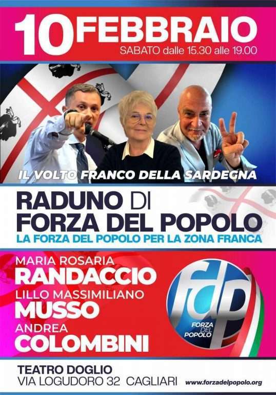 Saranno presenti il Presidente di Forza del Popolo Andrea Colombini, il Segretario Generale Lillo Massimiliano Musso e la candidata (esclusa) alla Presidenza della Regione Sardegna Maria Rosaria Randaccio.