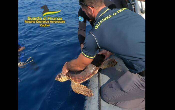 La testuggine, lunga circa 65 centimetri, galleggiava inerme, con problemi che le impedivano qualsiasi Il recupero è stato effettuato dai militari di un’unità navale delle Fiamme Gialle del Reparto operativo aeronavale di Cagliari che l’hanno affidata al Centro recupero cetacei e tartarughe marine “Marina di Nora”. Dopo oltre quattro mesi di cure l’esemplare ha ripreso vitalità e mobilità ed è stato restituito al proprio habitat naturale.
