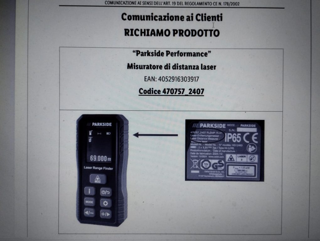 Lidl sta attualmente richiamando un telemetro laser Parkside. Il prodotto non alimentare, prodotto da Owim GmbH & Co. KG, potrebbe presentare una vulnerabilità di sicurezza. Il dispositivo, con codice articolo IAN 470757_2407, presenta il rischio di un laser eccessivamente potente, che potrebbe causare danni agli occhi in caso di manipolazione impropria.