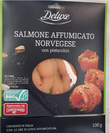 Il Ministero della Salute ha segnalato il richiamo precauzionale da parte del produttore di un lotto di salmone affumicato norvegese con pistacchio a marchio Deluxe Lidl. Il motivo indicato sull’avviso di richiamo è la possibile presenza di Listeria monocytogenes. Il prodotto in questione è venduto in confezioni da 100 grammi, con il numero di lotto LC22606501 e la data di scadenza 21/04/2026.